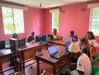 We work with small groups, so the instructors can give personal attention to each student. Each tailoring or ICT student has a his/her own machine and practices during the full training period. We provide the training materials, and we advertise our services to attract the surrounding community members to come as customers for our students.